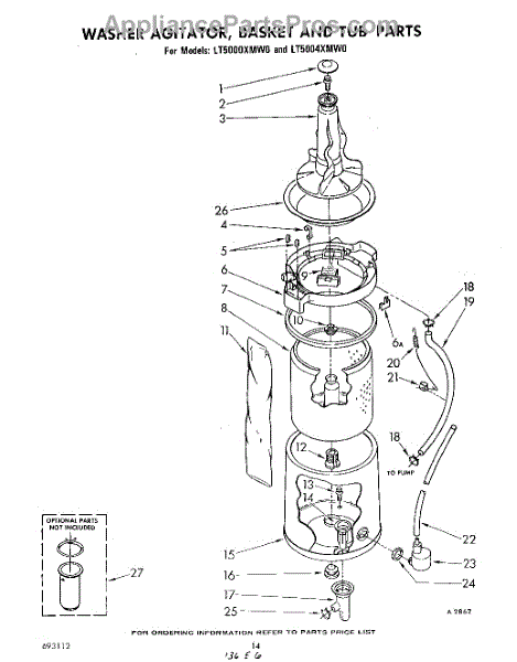 Parts for Whirlpool LT5004XMW0: 11 - Washer Agitator, Basket And Tub Parts