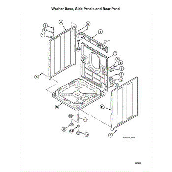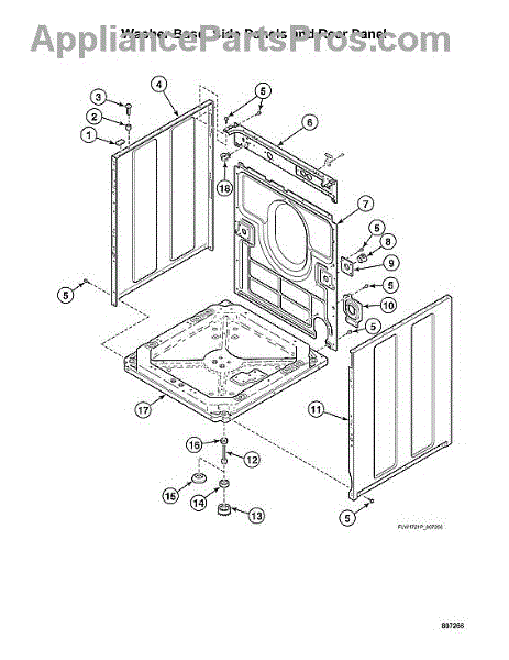 Hex washer head screw for dryers and laundry centers. Secures panels, components, and internal parts. Replace if stripped, missing, or damaged.