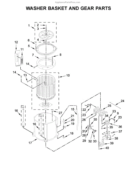 The suspension plays an important role in smoothly spinning the tub during agitation and spin cycles. It isolates vibrations generated by an unbalanced load to prevent damage to other components.
