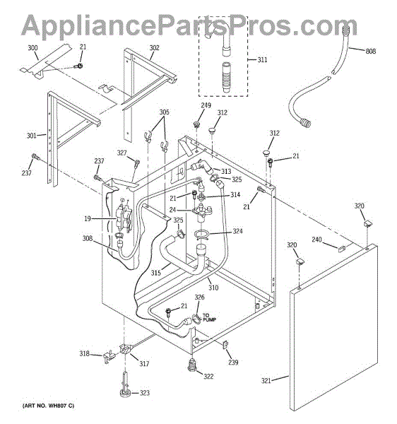 This external drain hose routes water from the appliance drain to the house drain or drip pan, helping prevent leaks and water buildup. It replaces a worn or damaged external drain line for proper draining. What it does