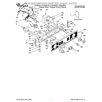 The Timer is an OEM replacement part for Whirlpool washers. It is an electronic component that controls the duration of each wash cycle. The timer is located behind the control panel of the washer.