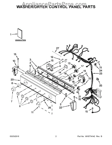 The Washer Timer is an OEM part for Whirlpool washing machines. It controls the various cycles and timing functions of the washer, ensuring that each cycle runs for the correct duration.