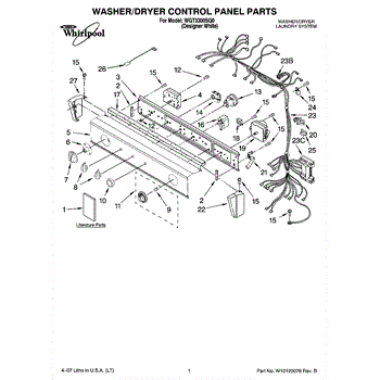The Washer Timer is an OEM part for Whirlpool washing machines. It controls the various cycles and timing functions of the washer, ensuring that each cycle runs for the correct duration.