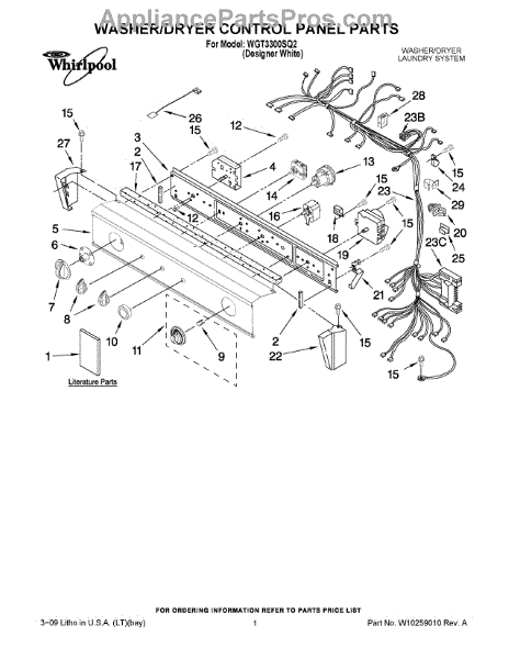 The Washer Timer is an OEM part for Whirlpool washing machines. It controls the various cycles and timing functions of the washer, ensuring that each cycle runs for the correct duration.