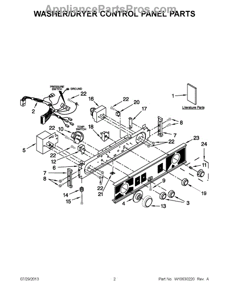 The Timer is an OEM replacement part for Whirlpool washers. It is an electronic component that controls the duration of each wash cycle. The timer is located behind the control panel of the washer.