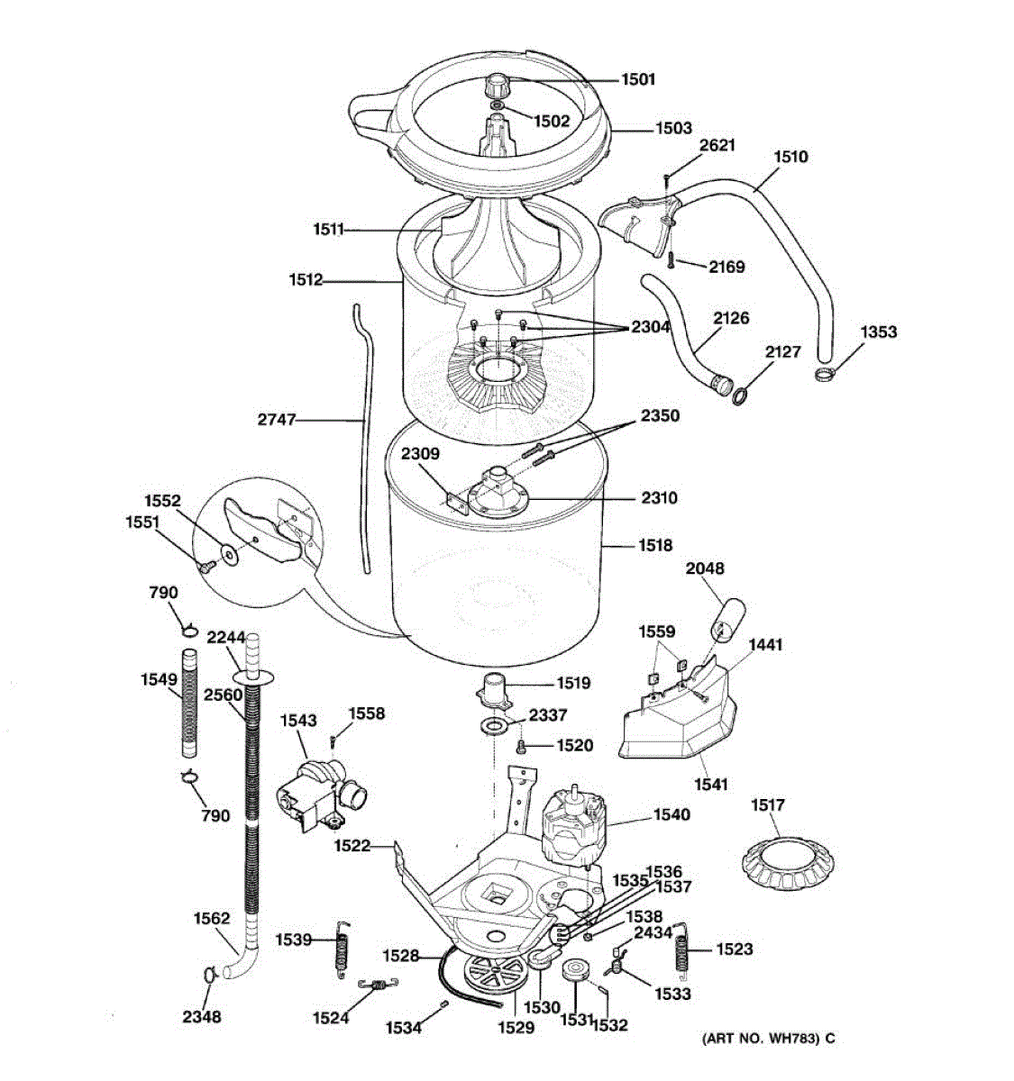 Parts for Ge WSM2700TEWAB: 05 - Washer Motor & Tub Parts