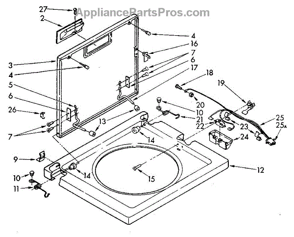This lid assembly replaces a damaged or discolored top lid so your washer closes properly and looks like new. It restores the washer's top cover, improving cosmetic appearance and allowing the lid switch and hinge to function correctly. What it does: