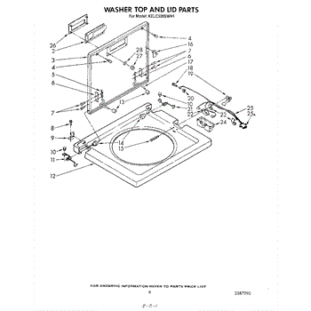 This protective cover for the washer's lid switch area guards the switch and wiring from water, detergent, and snagging inside the top panel, supporting reliable lid-closed detection and long-term safety interlock performance.