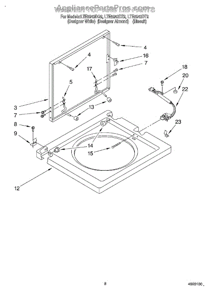 Parts for Whirlpool LTE5243DQ2: 06 - Washer Top And Lid Parts