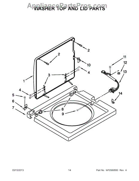 This lid assembly replaces a damaged or discolored top lid so your washer closes properly and looks like new. It restores the washer's top cover, improving cosmetic appearance and allowing the lid switch and hinge to function correctly. What it does:
