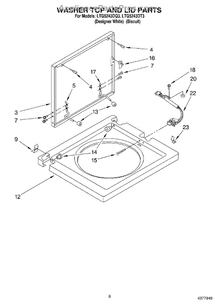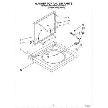 This lid assembly replaces a damaged or discolored top lid so your washer closes properly and looks like new. It restores the washer's top cover, improving cosmetic appearance and allowing the lid switch and hinge to function correctly. What it does: