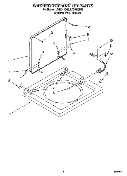 Parts for Whirlpool LTG5243DQ6: 06 - Washer Top And Lid Parts