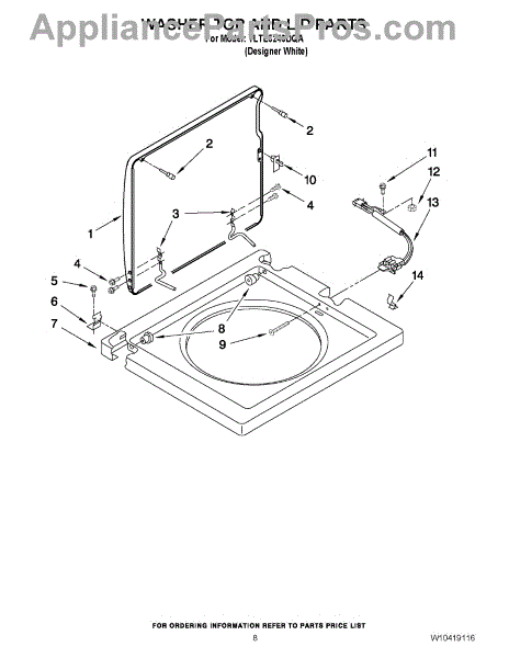 • If the lid switch or hinge hardware is damaged, replace those parts separately.