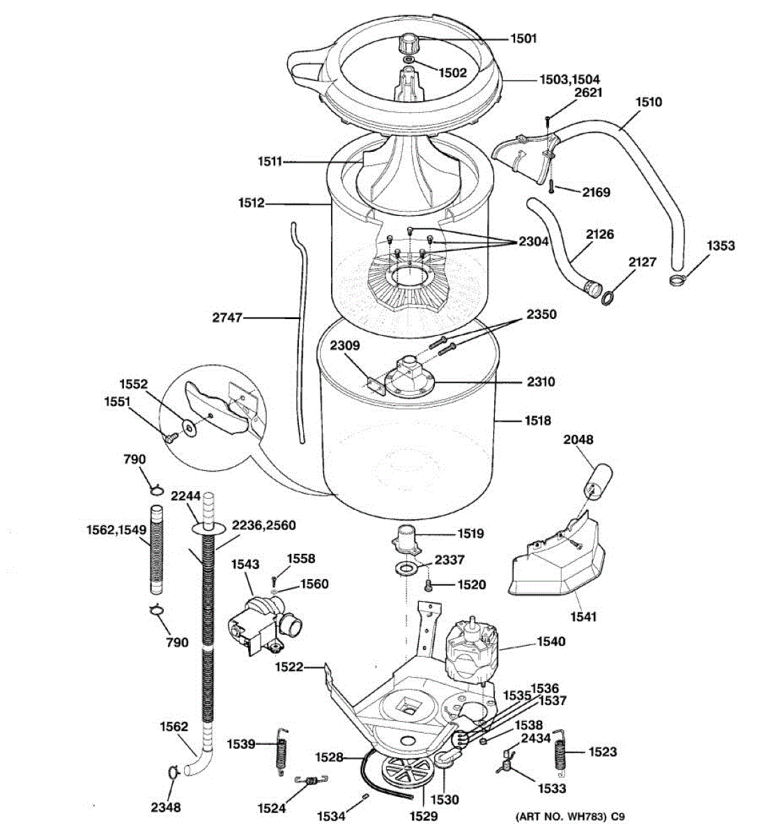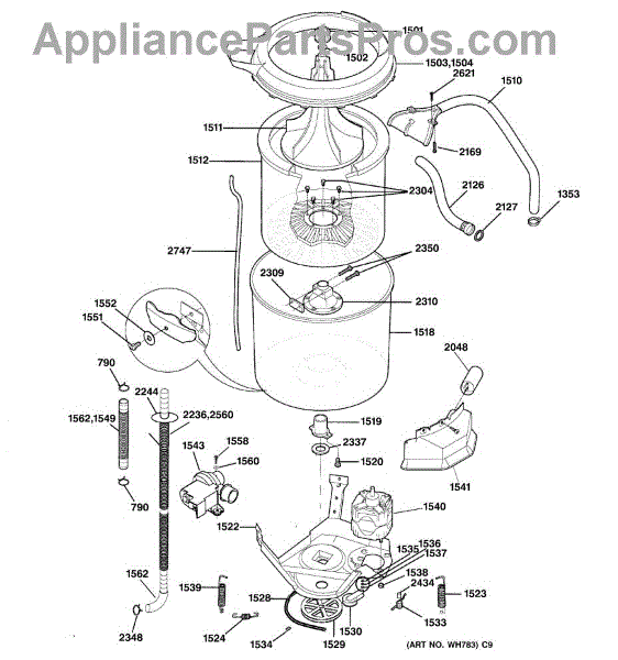 Parts for Ge WSM2780WCWWW: 05 - Washer Tub, Hoses & Motor Parts