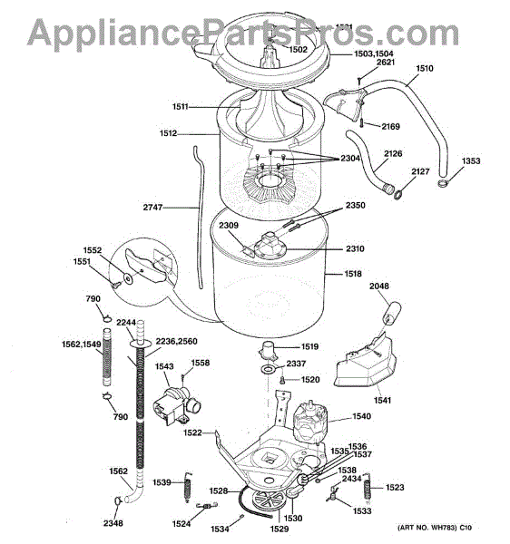Parts for Ge WSM2781WBWWW: 05 - Washer Tub, Hoses & Motor Parts