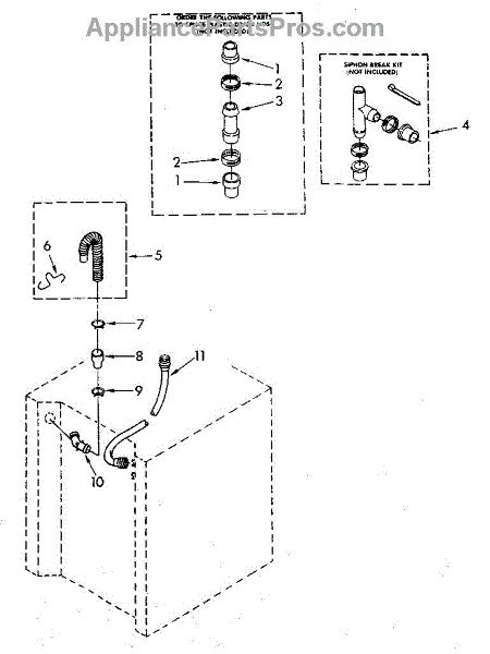 • Stops backflow/siphoning from the household drain into the dishwasher
