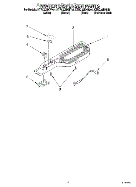 Parts for Kitchenaid KTRC22EKBT01: 08 - Water Dispenser, Optional Parts