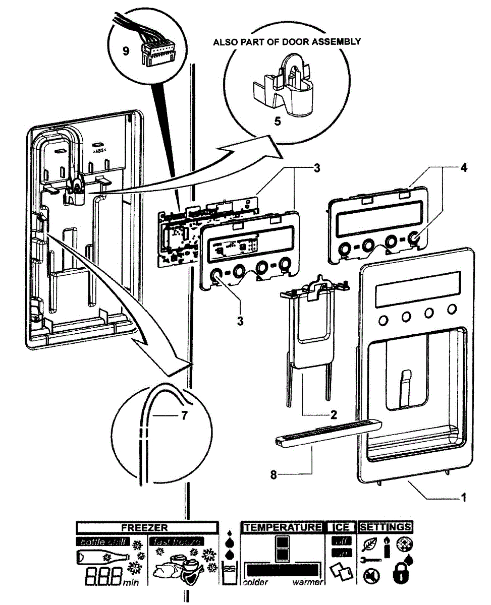 The Display Control Board is an OEM component specifically designed for Fisher & Paykel bottom-mount and side-by-side refrigerators containing digital interfaces. This printed circuit features multi-lingual programming and illuminated icons.