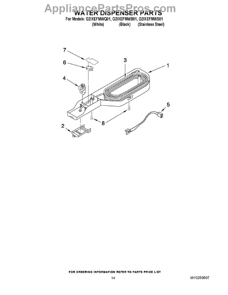 Parts for Whirlpool G2IXEFMWB01: 08 - Water Dispenser Parts