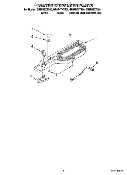 Parts for Whirlpool GR9FHTXTQ00: 08 - Water Dispenser Parts, Optional Parts