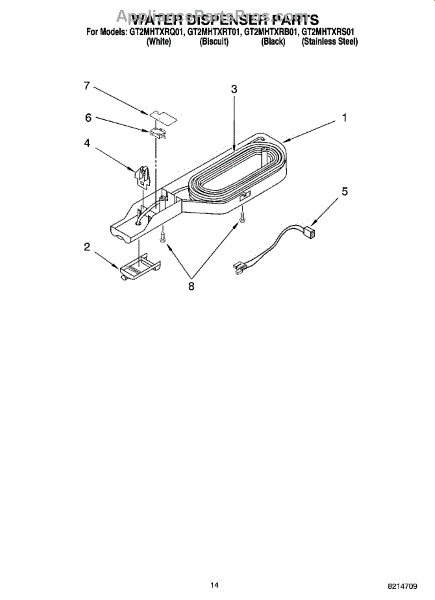 Parts for Whirlpool GT2MHTXRB01: 08 - Water Dispenser Parts