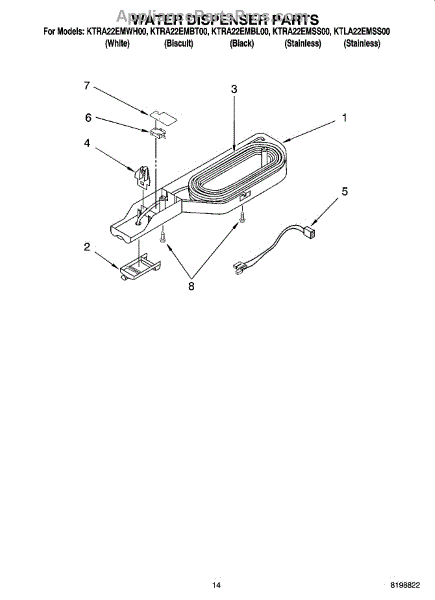 Parts for Kitchenaid KTLA22EMSS00: 08 - Water Dispenser Parts, Optional Parts