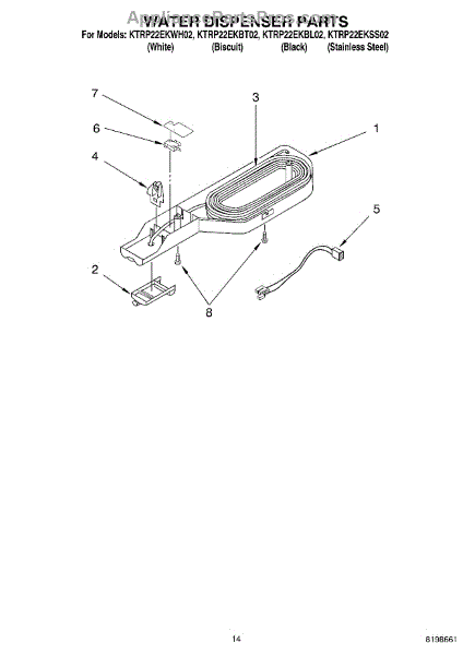 Parts for Kitchenaid KTRP22EKBT02: 08 - Water Dispenser Parts, Optional Parts