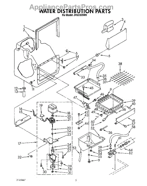 Parts for Whirlpool JVGC535W0: 02 - Water Distribution Parts