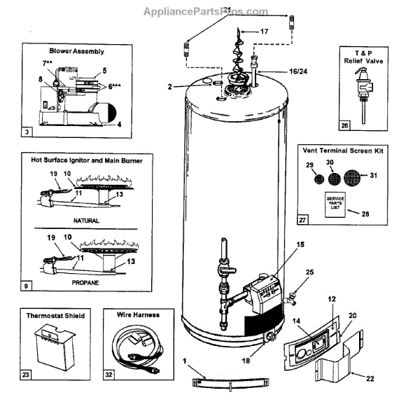 Parts for Ao Smith GPVT50100: Water Heater Parts