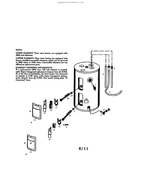 Parts for Kenmore 153.316140 (153316140, 153 316140): Water Heater Parts