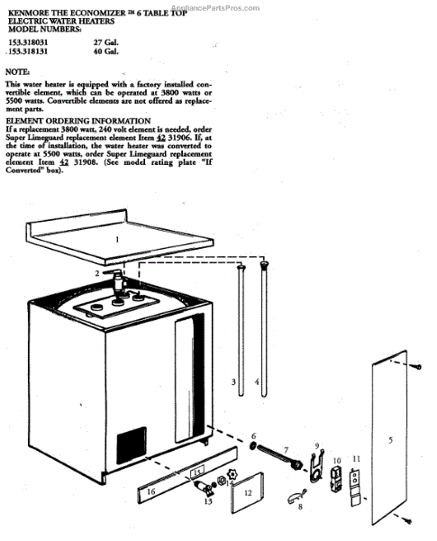 Parts for Kenmore 153.318031 (153318031, 153 318031): Water Heater Parts