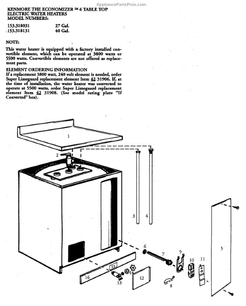 Parts for Kenmore 153.318131 (153318131, 153 318131): Water Heater Parts