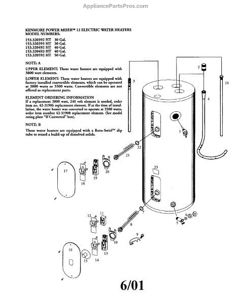 Parts for Kenmore 153.320592HT (153320592HT, 153 320592HT): Water Heater Parts
