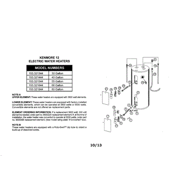 Parts for Kenmore 153.321344 (153321344, 153 321344): Water Heater Parts