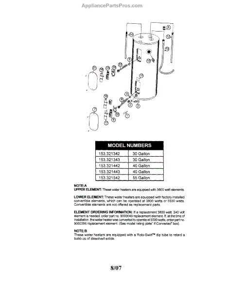 Parts for Kenmore 153.321442 (153321442, 153 321442): Water Heater Parts