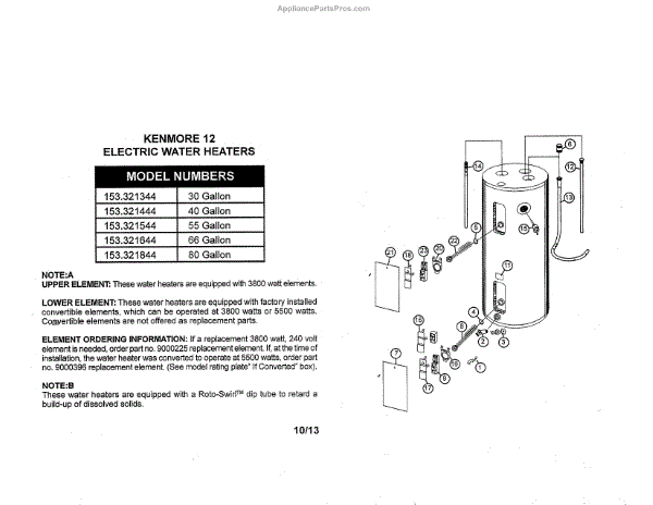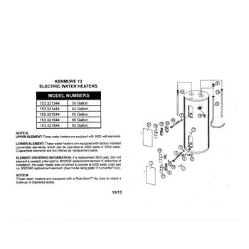 Parts for Kenmore 153.321544 (153321544, 153 321544): Water Heater Parts