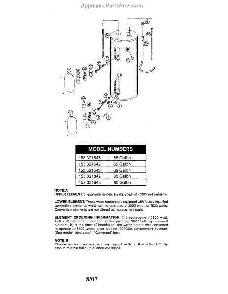 Parts for Kenmore 153.321642 (153321642, 153 321642): Water Heater Parts