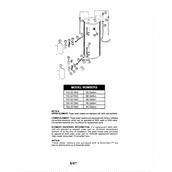 Parts for Kenmore 153.321643 (153321643, 153 321643): Water Heater Parts