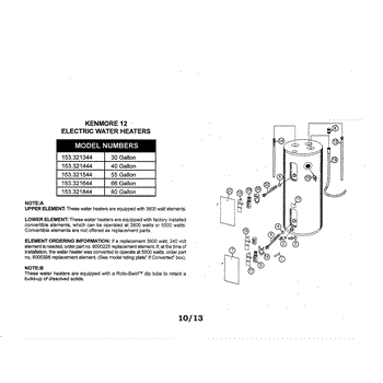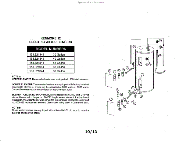 Parts for Kenmore 153.321844 (153321844, 153 321844): Water Heater Parts