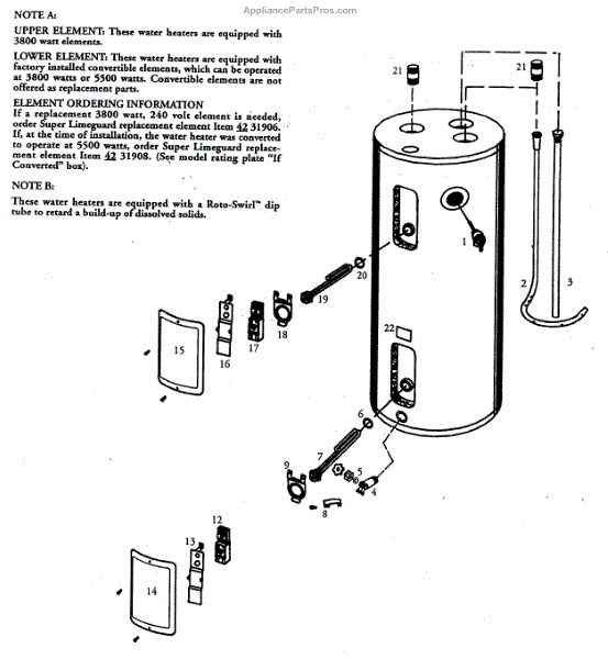 Parts for Kenmore 153.326361 (153326361, 153 326361): Water Heater Parts