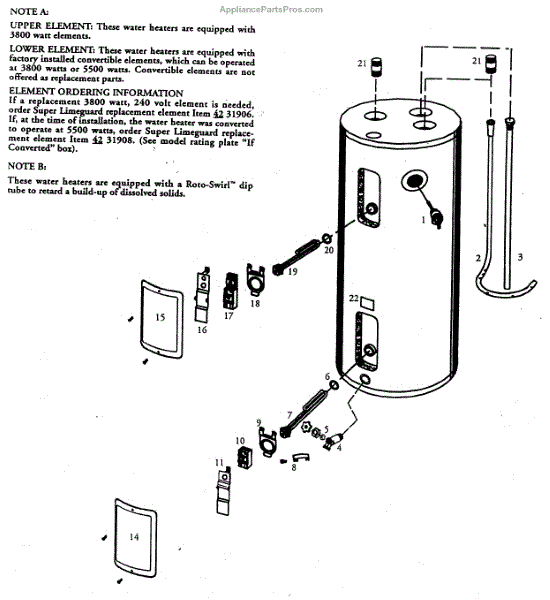 Parts for Kenmore 153.326460 (153326460, 153 326460): Water Heater Parts