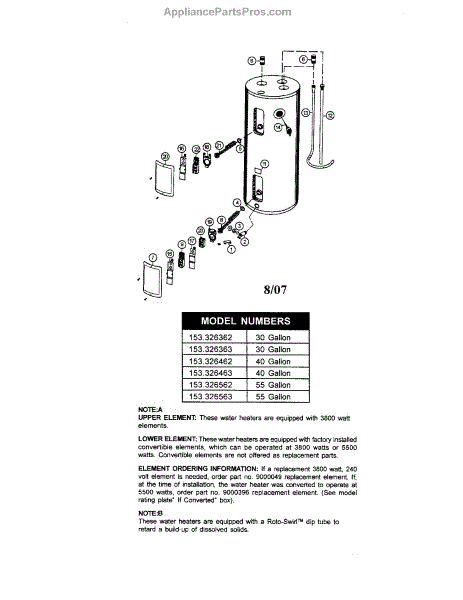 Parts for Kenmore 153.326562 (153326562, 153 326562): Water Heater Parts