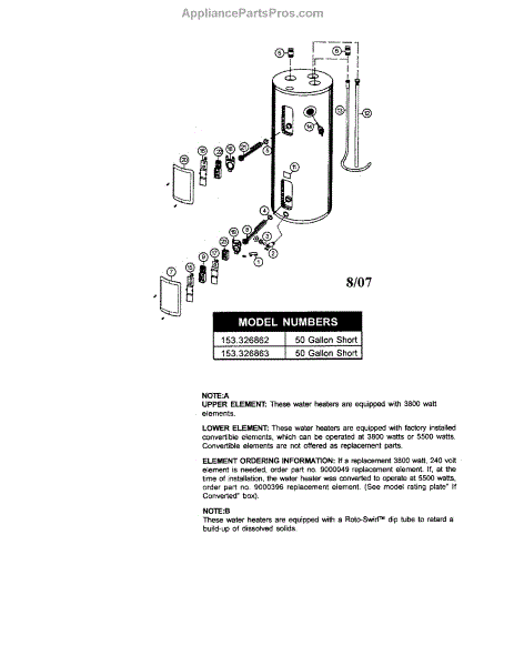 Parts for Kenmore 153.326863 (153326863, 153 326863): Water Heater Parts