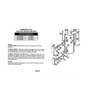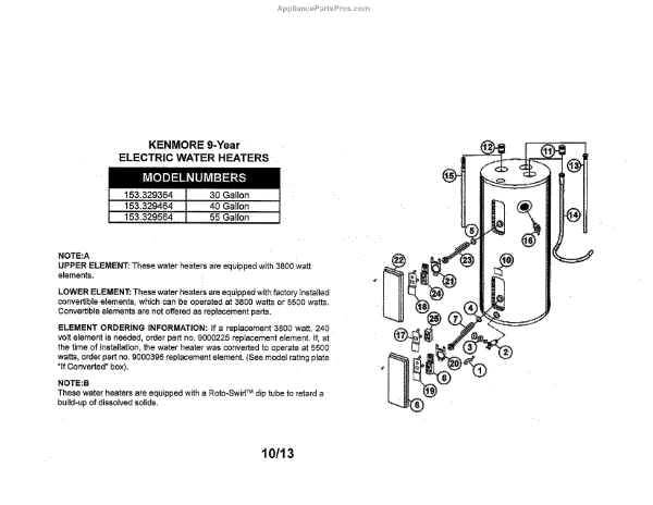 Parts for Kenmore 153.329564 (153329564, 153 329564): Water Heater Parts