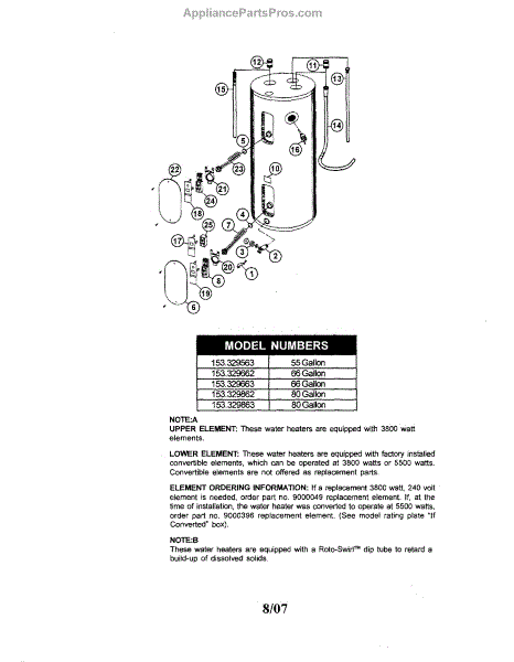 Parts for Kenmore 153.329663 (153329663, 153 329663): Water Heater Parts