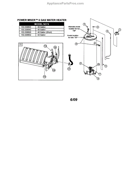 Parts for Kenmore 153.330620 (153330620, 153 330620): Water Heater-40 Gallon (Short) Parts
