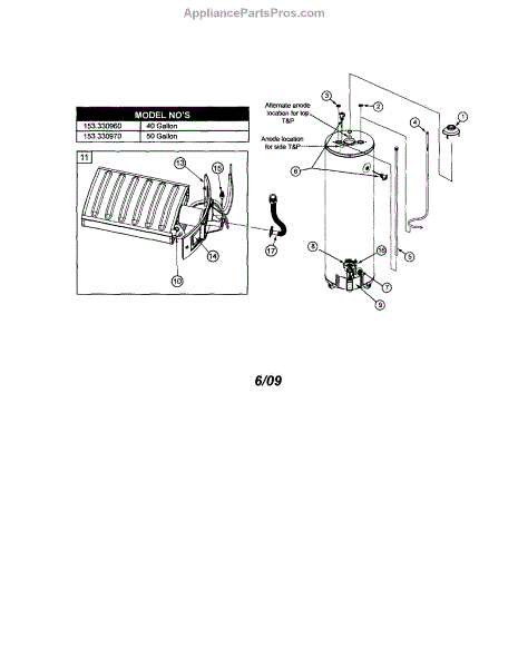 Parts for Kenmore 153.330960 (153330960, 153 330960): Water Heater-40 Gallon Parts