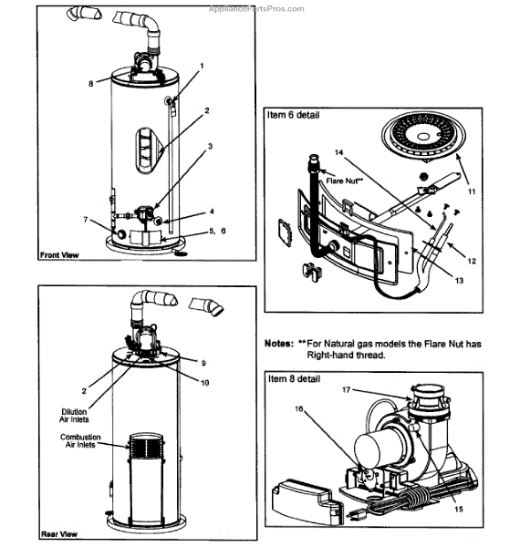 Parts for Kenmore 153.331360 (153331360, 153 331360): Water Heater Parts