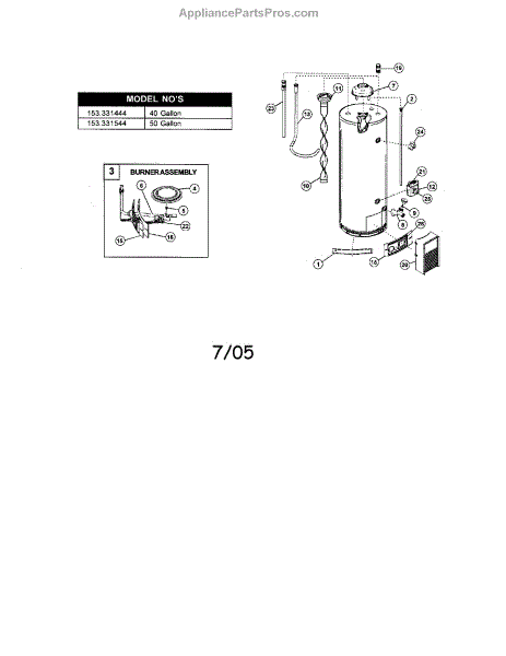 Parts for Kenmore 153.331444 (153331444, 153 331444): Water Heater Parts