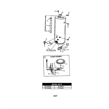 Parts for Kenmore 153.333850 (153333850, 153 333850): Water Heater Parts